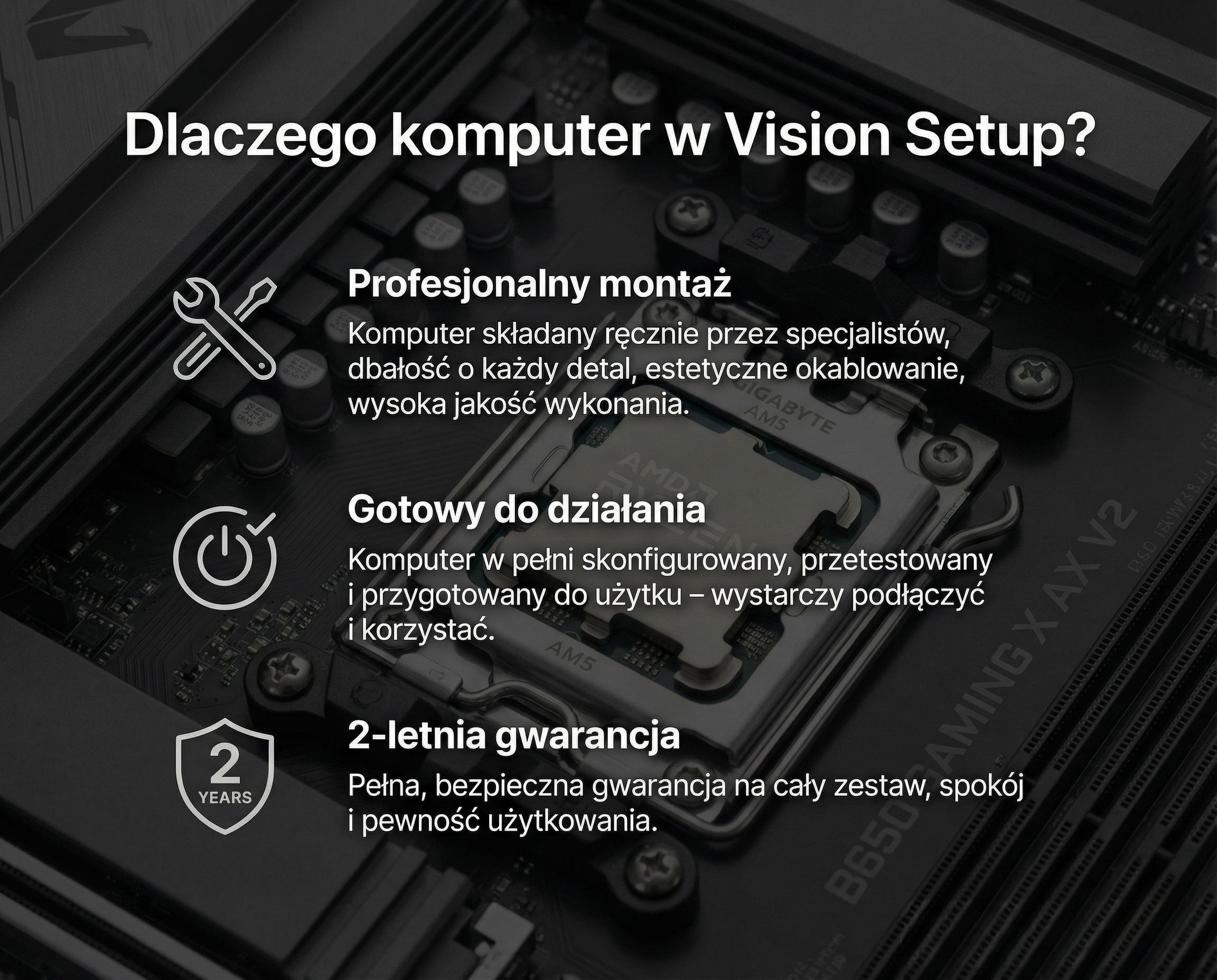 Niezależnie od tego, czy komputer ma służyć do gier, pracy kreatywnej czy codziennego użytkowania – Vision Setup to pewny wybór na lata.